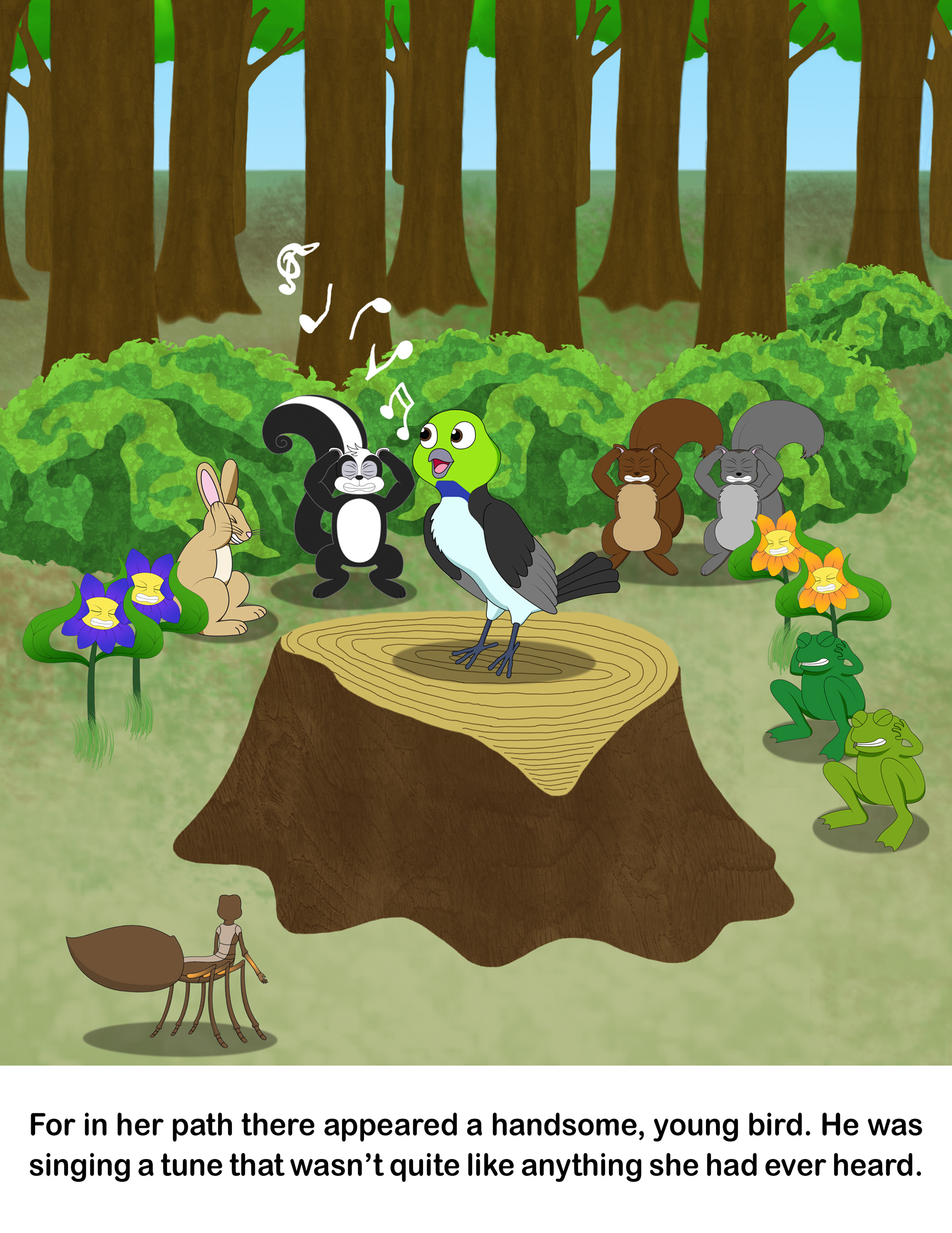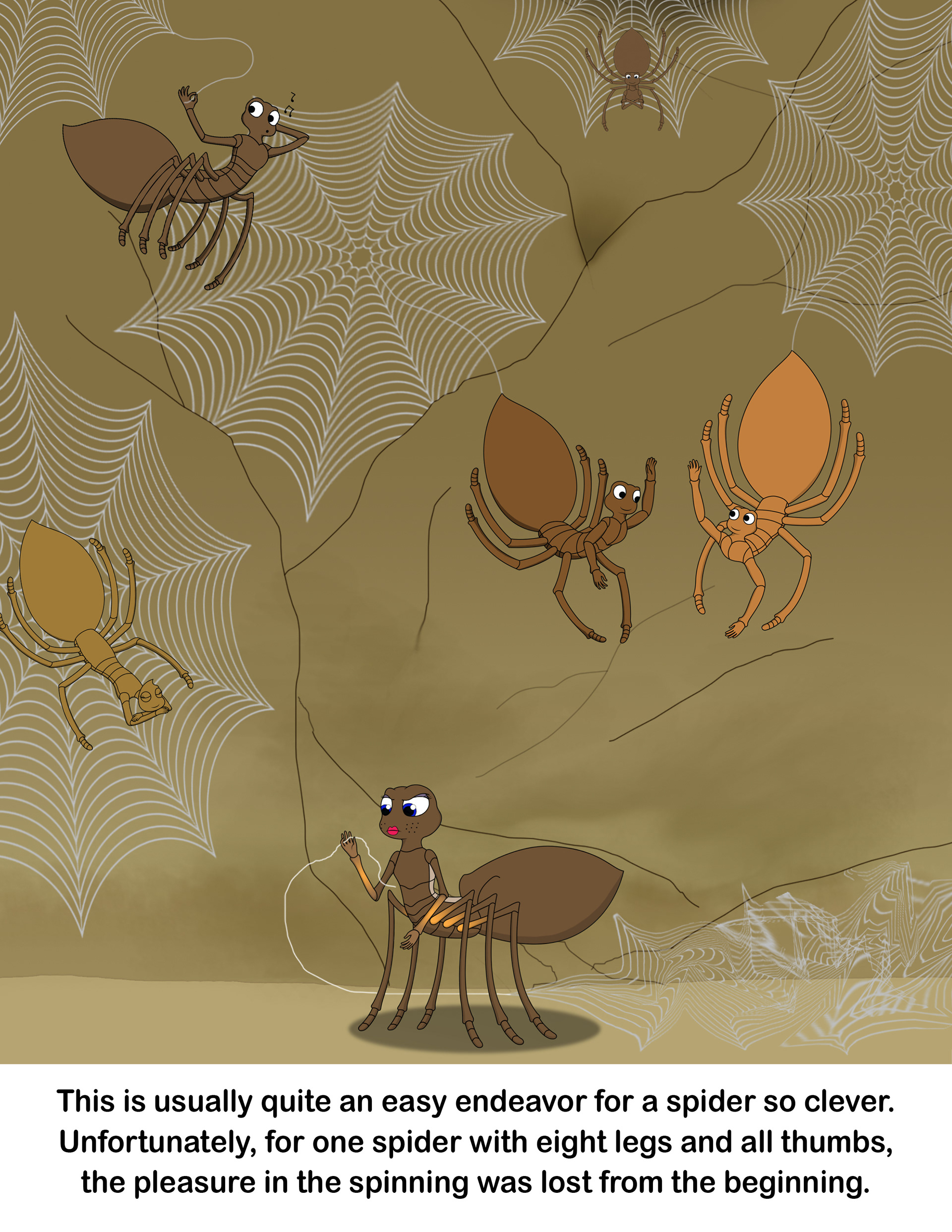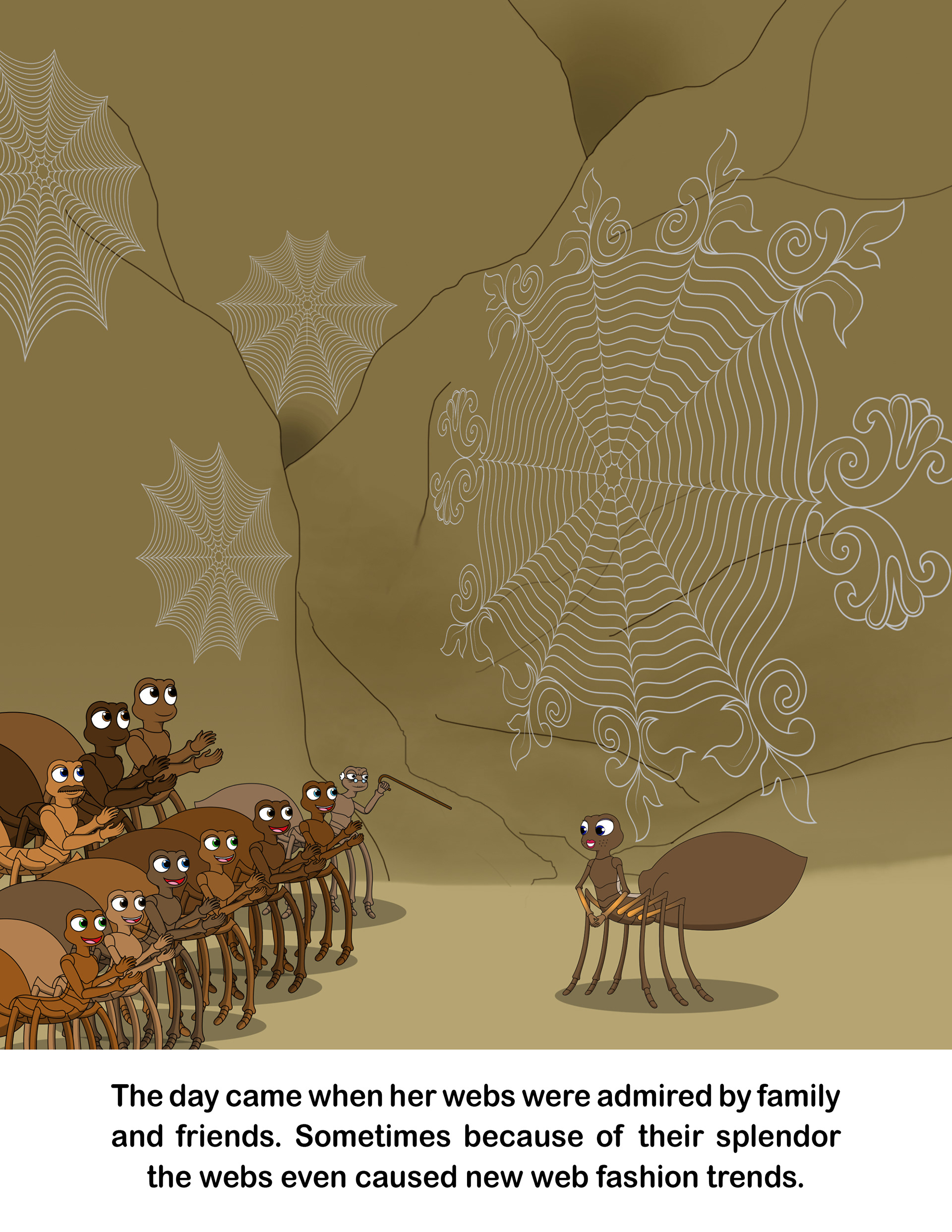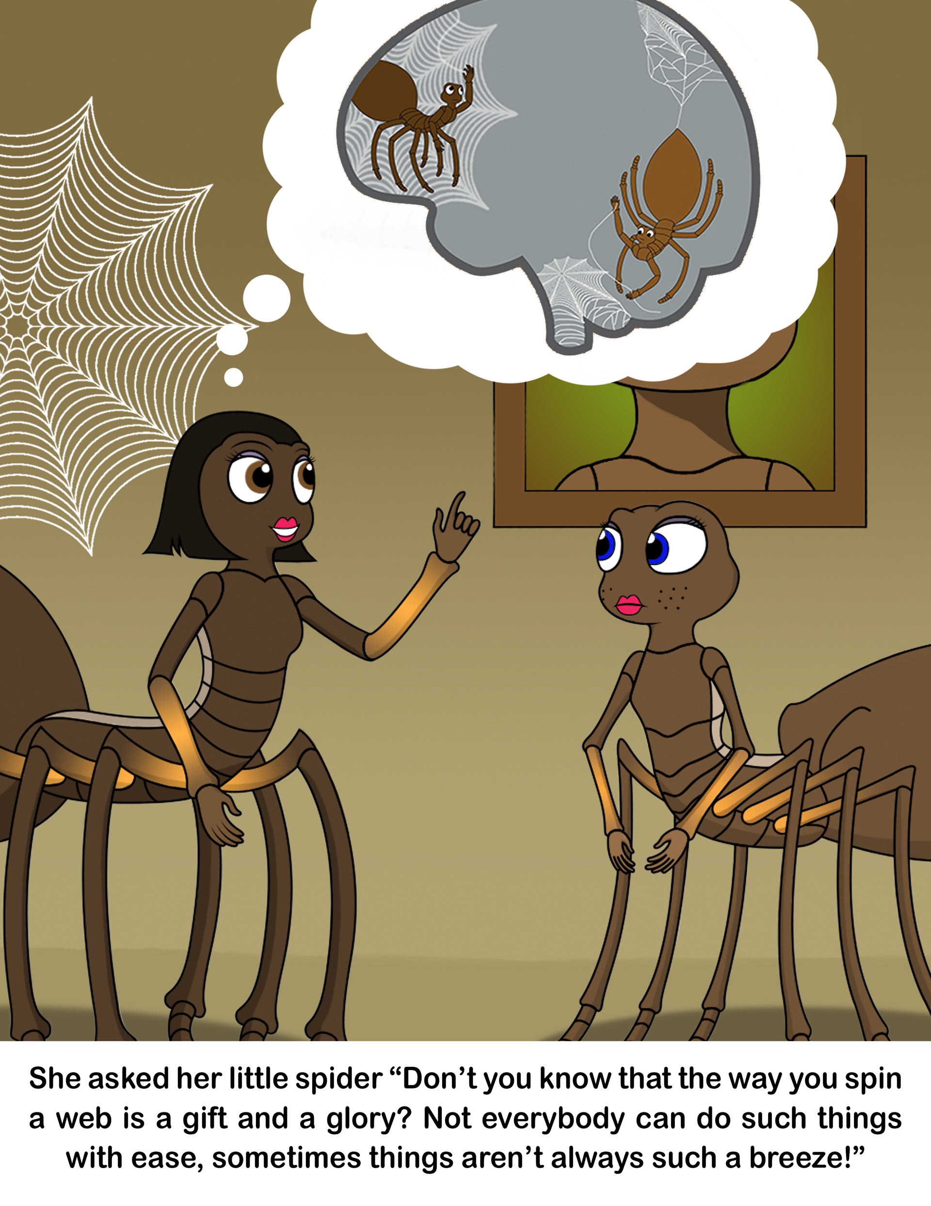 Created and illustrated all the characters in the story. The plot is based on a spider and a bird who help one another by learning how to solve each other's problems by becoming good friends.