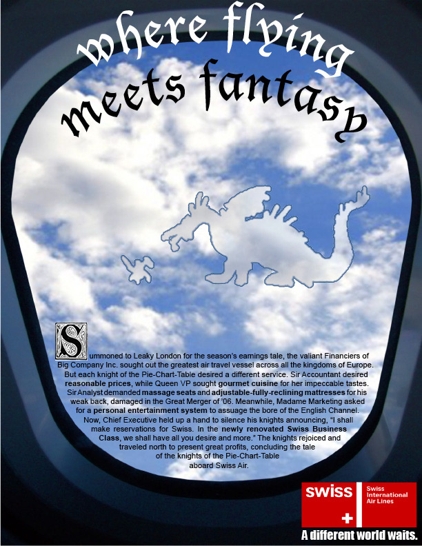These ads were designed for a copywriter's portfolio. I took the initiative to wrap the typography inside the airplane window for greater impact.